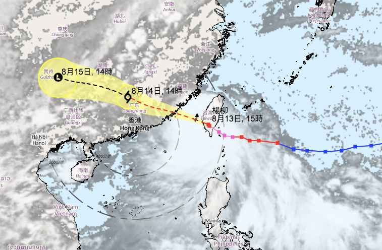 香港天文台は台風「楊柳」が8月13日朝、香港から800キロメートル以内に接近すると予測している。12日の香港メディアによると、天文台は台風「楊柳」が14日朝に香港から800キロメートル以内に接近するため、その時点で台風警報シグナル1が発令される。14日には、突風、大雨、雷雨が予想される。天文台は、楊柳と珠江河口との距離、その強度、および現地の風況に基づき、13日遅くまたは14日早朝に、よりレベルの高い熱帯低気圧警報を発令する必要があるかどうかを判断するという。(写真:香港天文台)